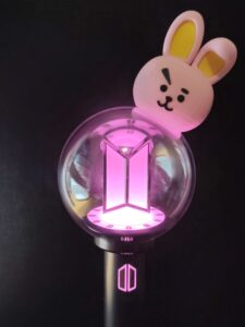 Hecho con materiales duraderos y atención al detalle, este accesorio se destaca como el complemento ideal para tu pasión por BTS. Úsalo para personalizar tu experiencia y destacar en cualquier evento ARMY.
