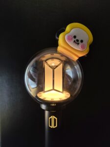 Hecho con materiales duraderos y atención al detalle, este accesorio se destaca como el complemento ideal para tu pasión por BTS. Úsalo para personalizar tu experiencia y destacar en cualquier evento ARMY.